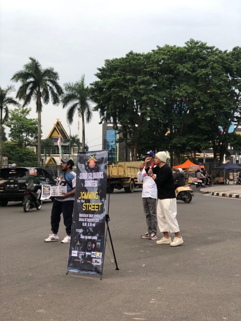 Jambi, 02 Desember 2025 — Forum Musisi Jambi (FMJ) menggelar aksi penggalangan dana bertema “Suara Solidaritas Sumatera: Jamming on the Street” di pelataran Taman Jomblo, Kota Jambi, Selasa (22/02/2025). Kegiatan ini merupakan bentuk kepedulian para musisi Jambi terhadap masyarakat yang terdampak bencana alam di Aceh, Padang, dan Sibolga.